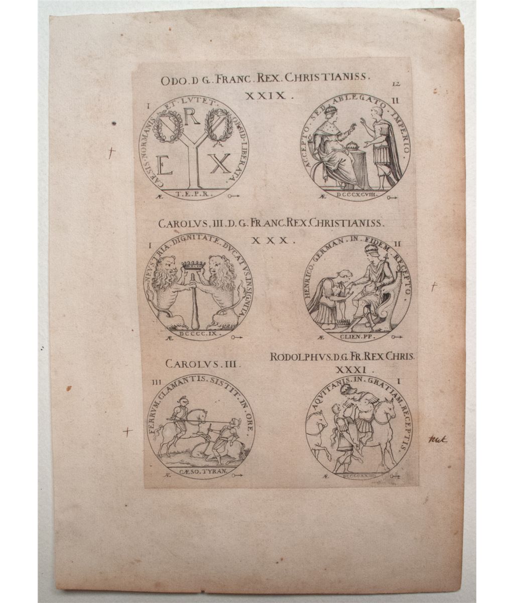 Obverse & Reverse prints of French medals. Ancient Latin text, with lions, chevaliers, royalty, and others. Ornate artwork, very unique.City: County: State: