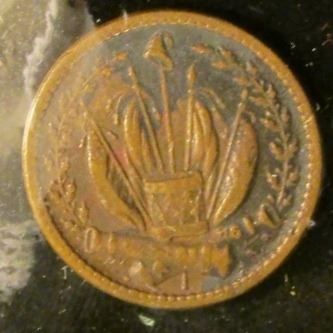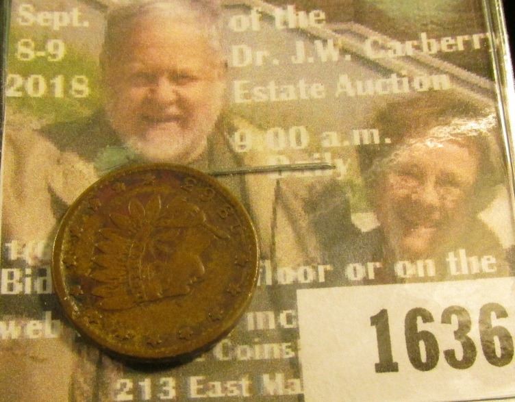 1863 Civil War Token. Indian Head on Obv. Rev Flags Drum and Cannons. VF.