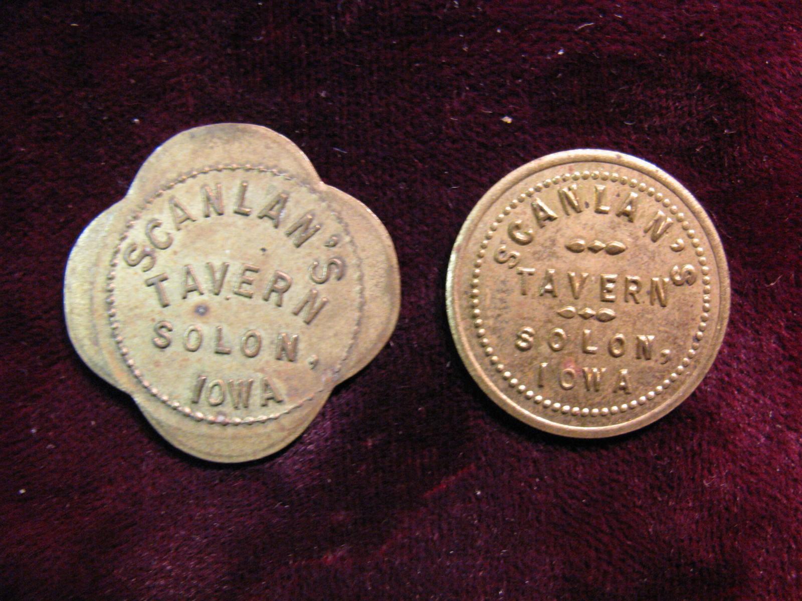 1638. Scanlan's, Solon, Iowa, 5c Round & 5c Scalloped.