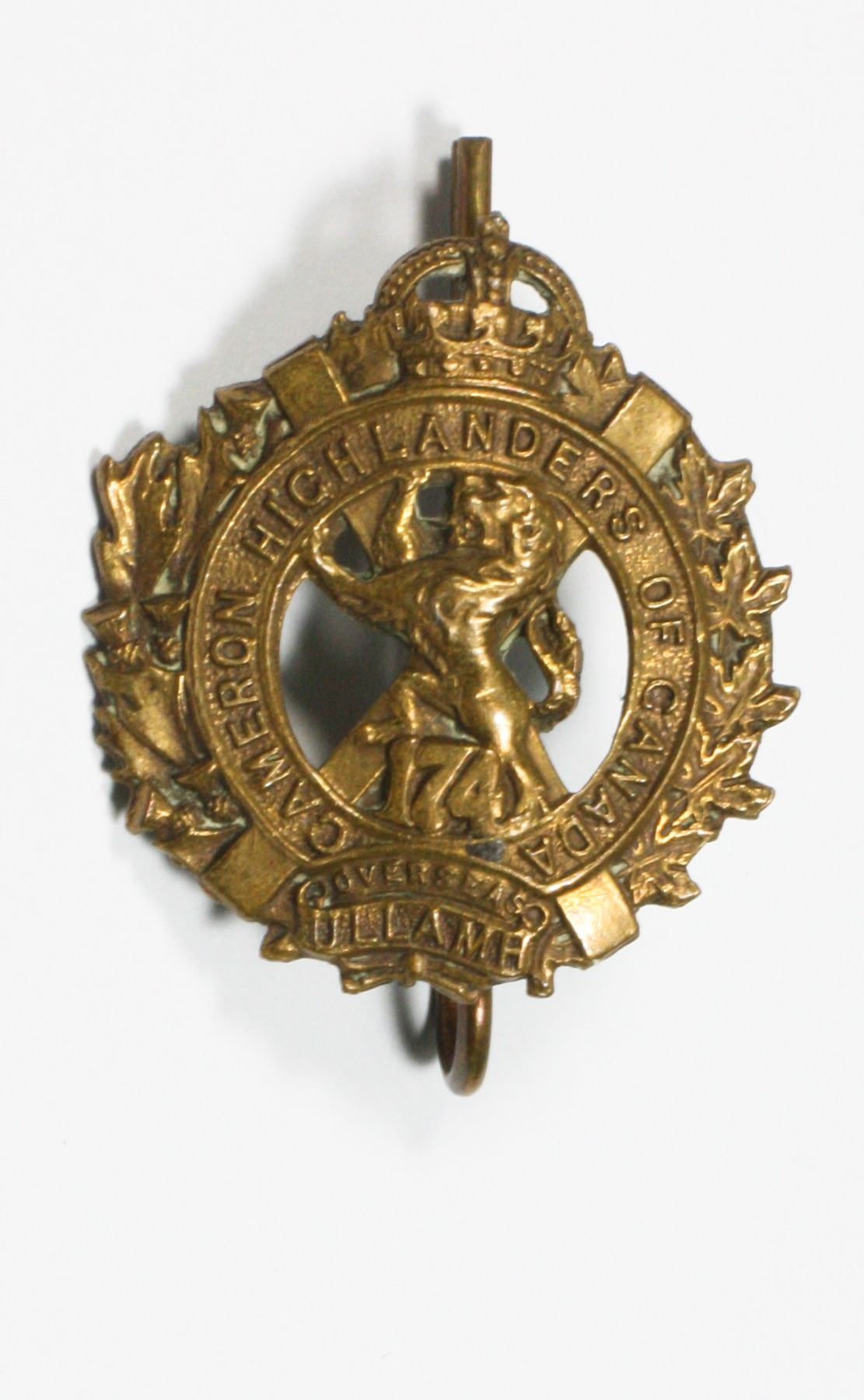 CAMERON HIGHLANDERS OF CANADA COLLAR BADGE COMPLETE WITH LUGS WORLD WAR ONE CANADIAN CANADA ALLIED FORCES