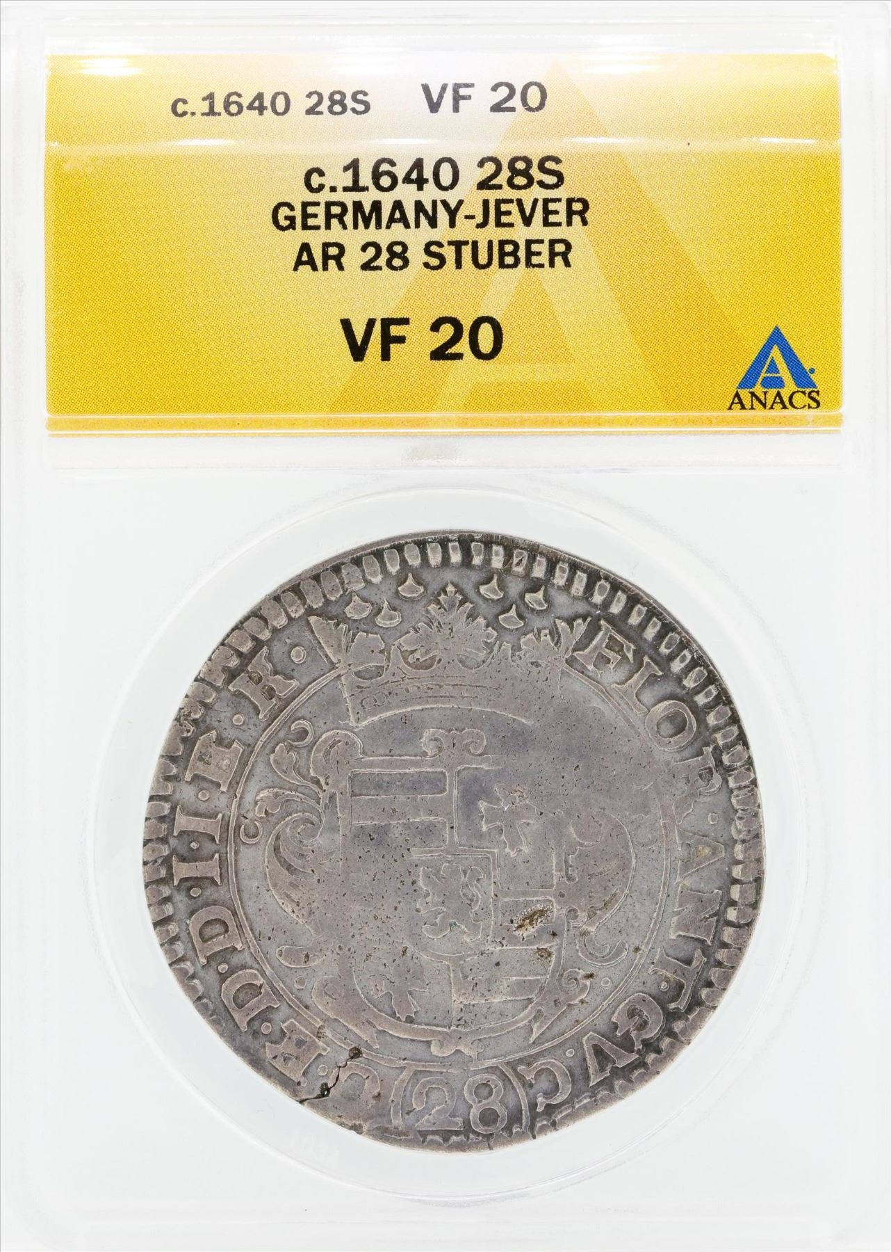 One 1640 Germany Jever AR 28 Stuber Coin ANACS VF20.