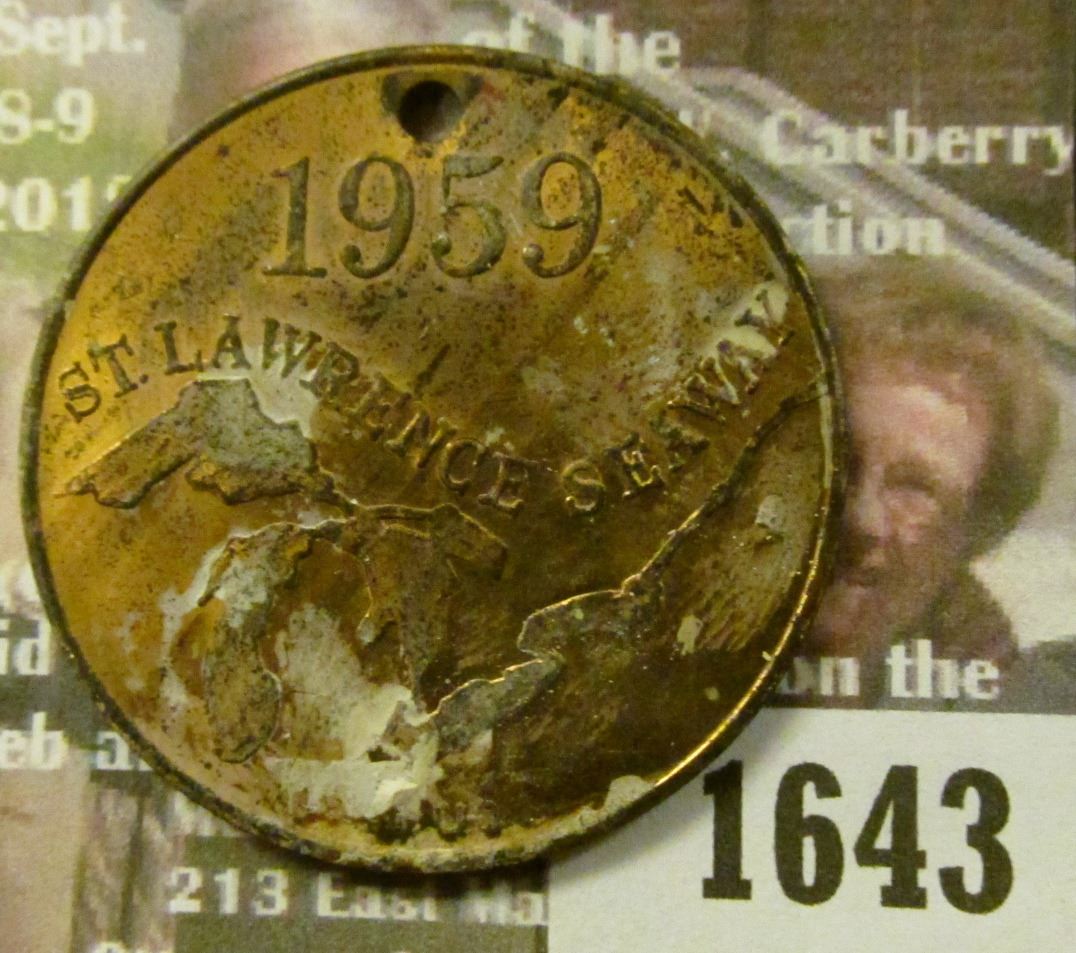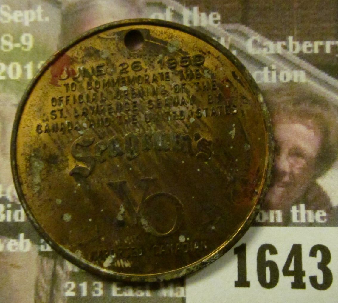1643 _ 1959 St. Lawrence Seaway Holed Bronze Meda,l Seagram's Vo. on Rev.