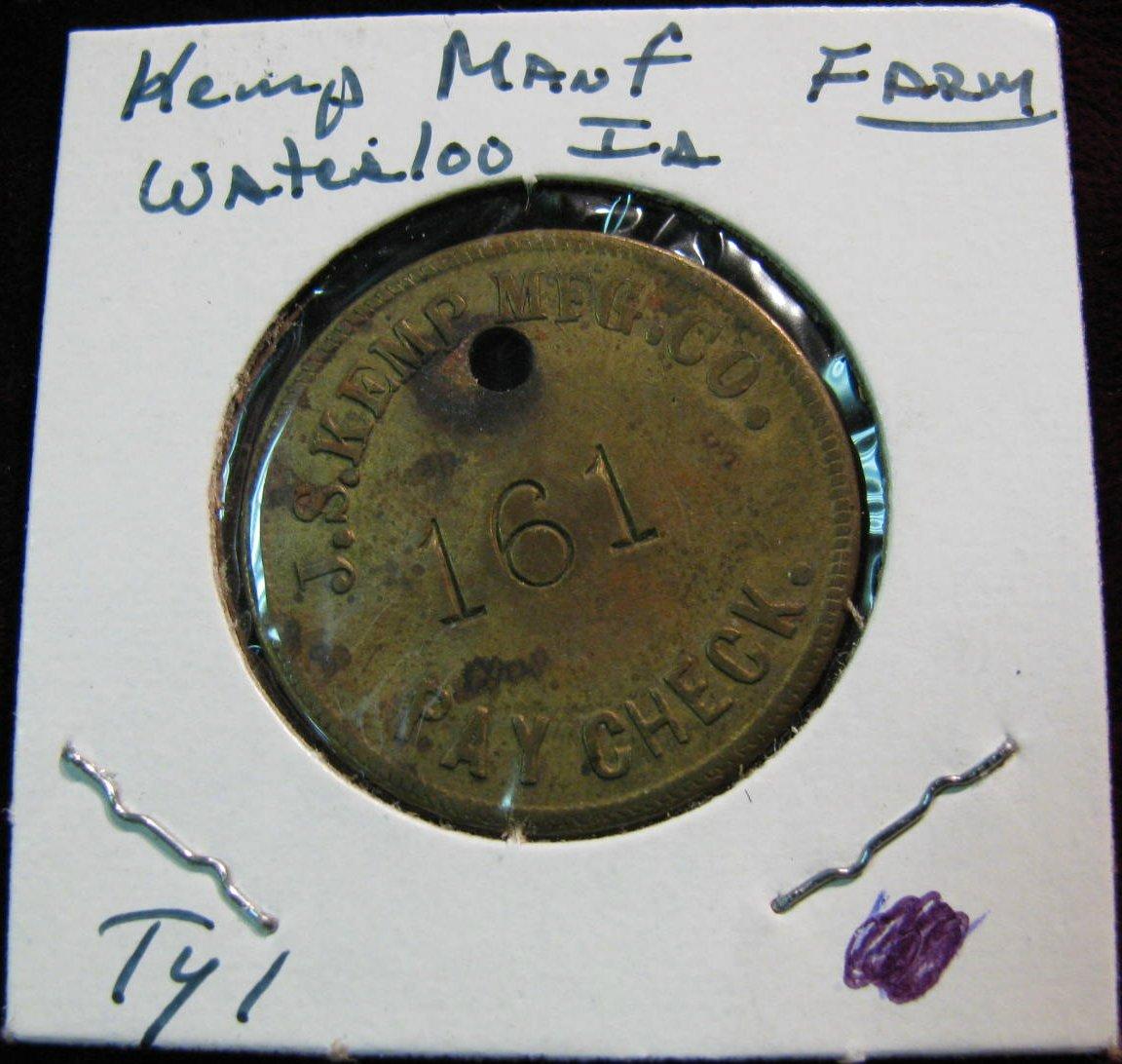 1643. J.S Kemp Mfg. Co. Paycheck. Uniface, Waterloo, Iowa. Holed as Made.