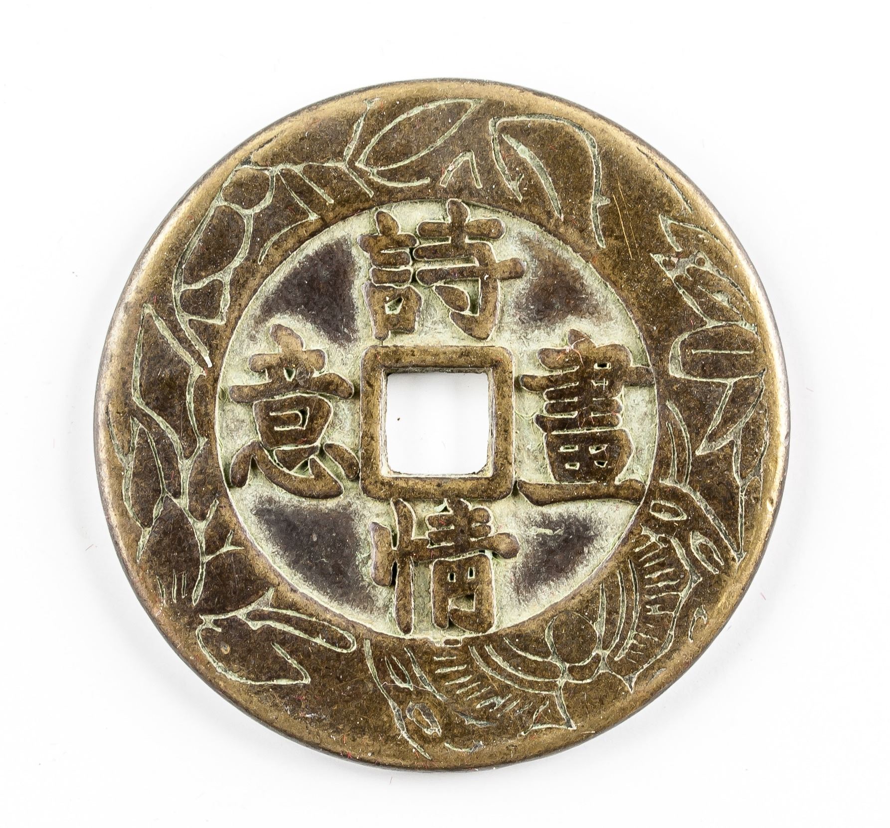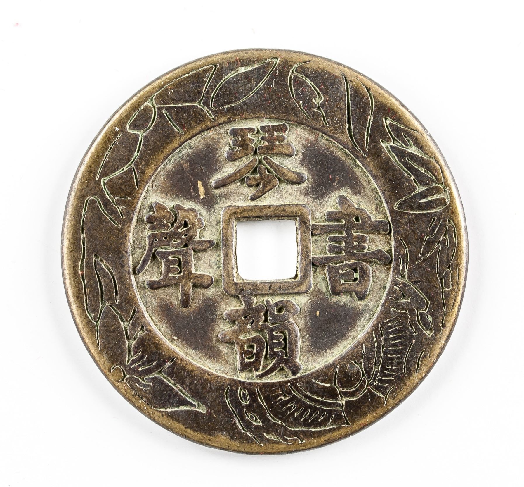 1644-1912 Chinese Qing dynasty brass flower money, obverse lettering Shi Qing Hua Yi, reverse lettering Qin Yun Shu Sheng, D: 42.4 mm, 21.55 grams