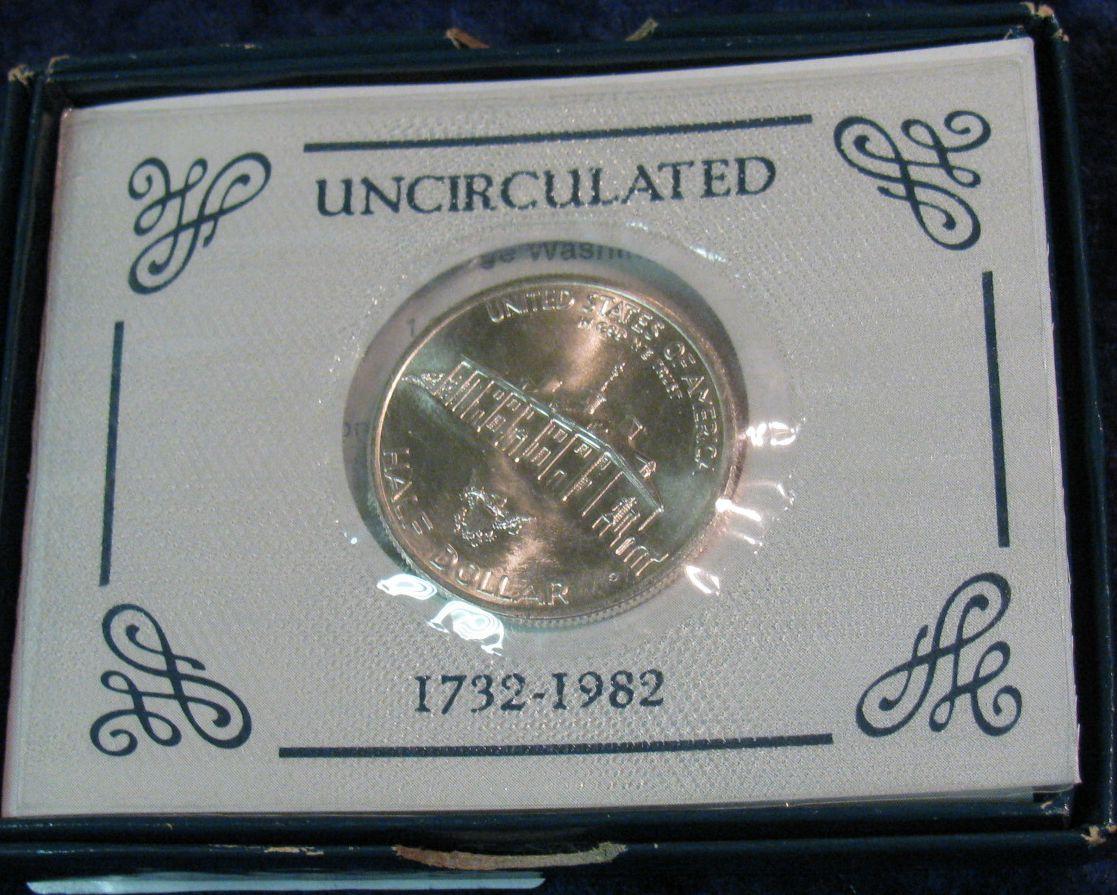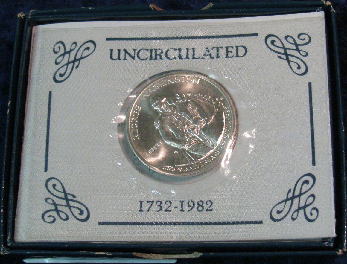 1648. 1982 D George Washington Silver Commemorative Half Dollar. BU. In original box.