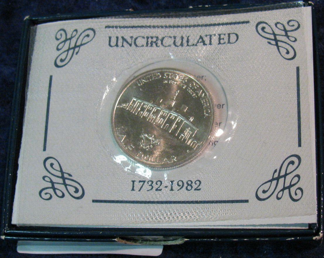 1649. 1982 D George Washington Silver Commemorative Half Dollar. BU. In original box.