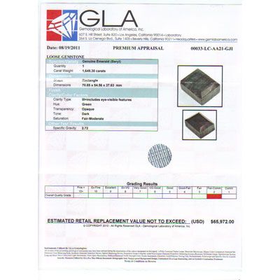1649.3ctw Big Emerald Gemstone, APPR. CERT. $49470 **|**|** ; MSRP: $49500