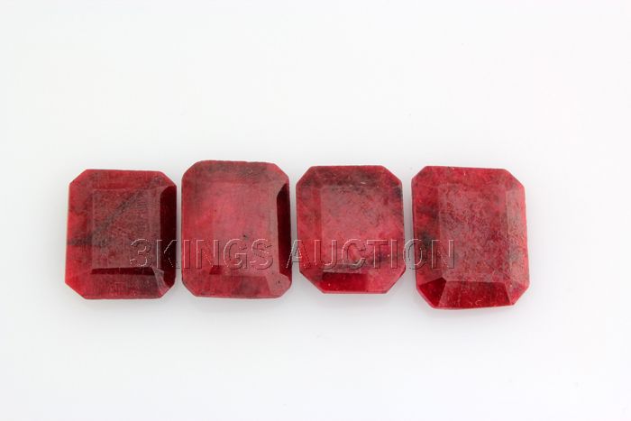 165.82ctw RubyEmeraldCut LooseGemstone lot of 4 **|**|** Mix Sizes 24-27x20-21x6-7mm Natural Ruby Gemstone Flat Emerald Shape lot of 4 ; MSRP: $600