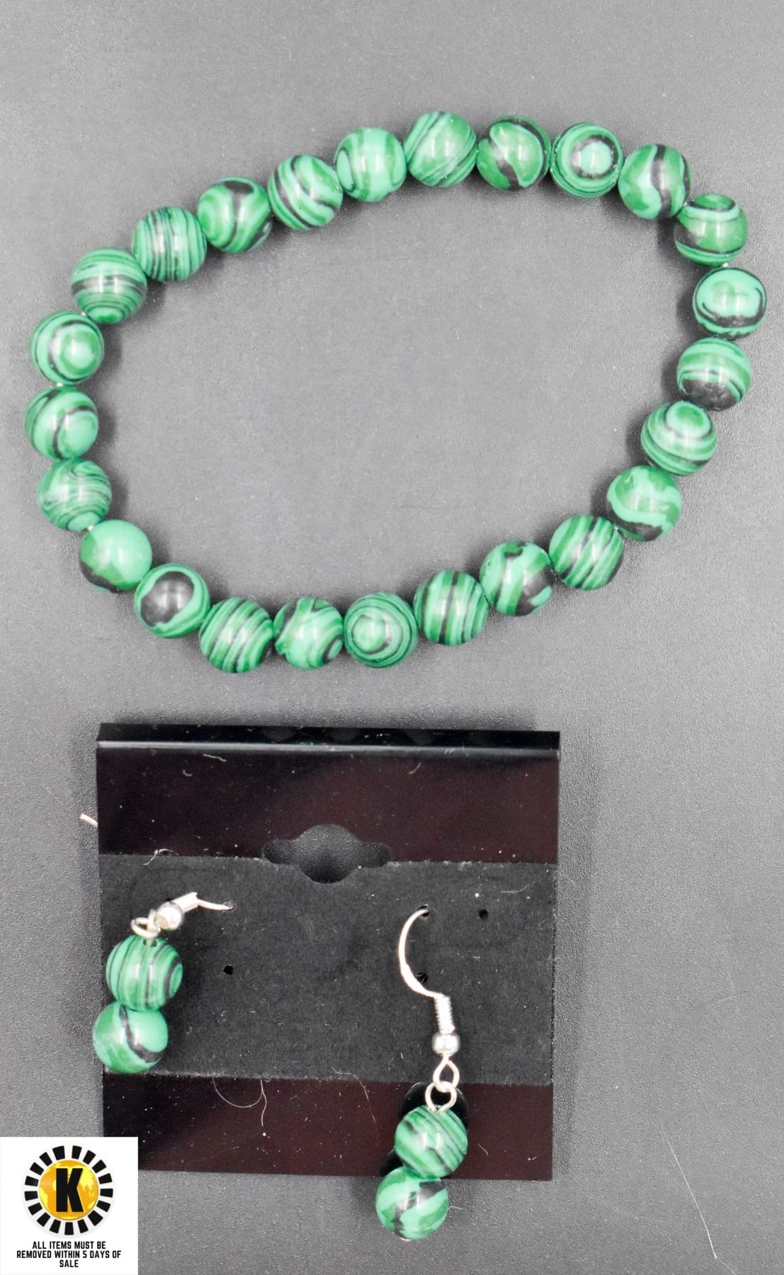 #165-NATURAL GREEN MALACHITE EARRINGS, BRACELET