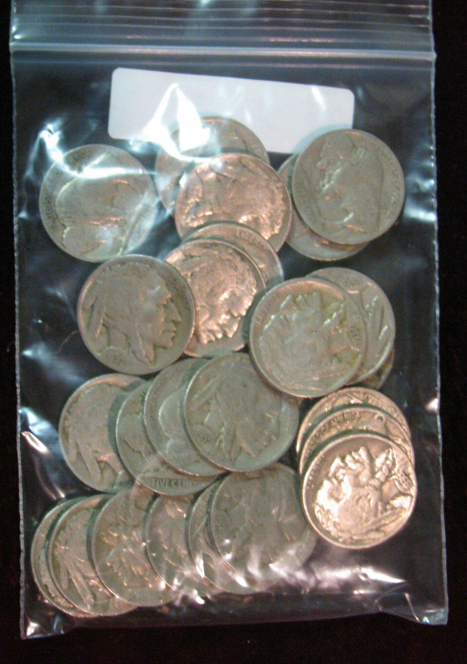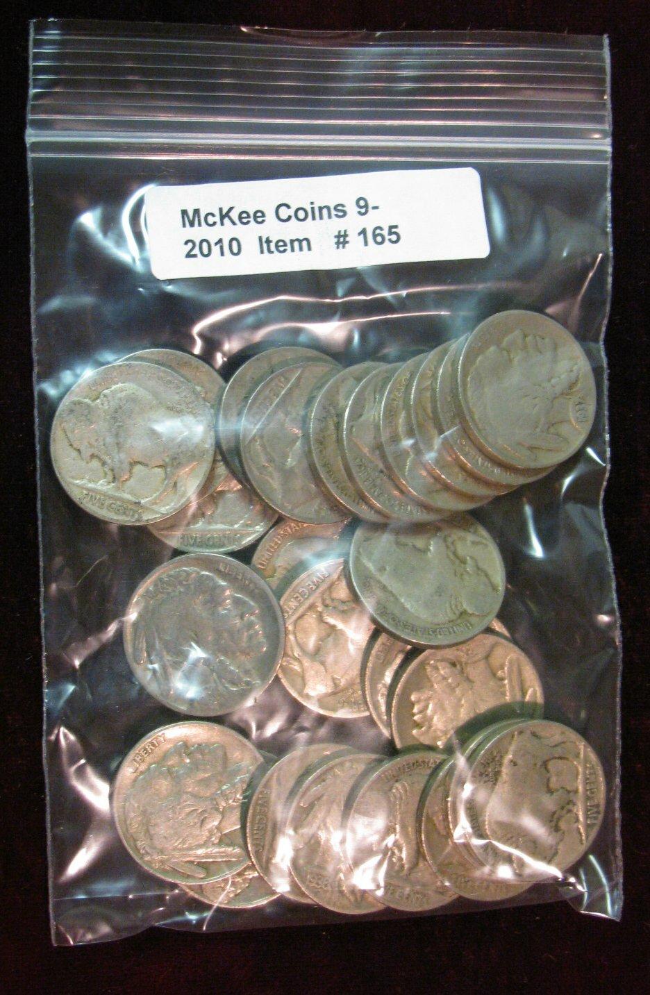 165. Roll of (25) Mixed Date Buffalo Nickels. Average circulated.