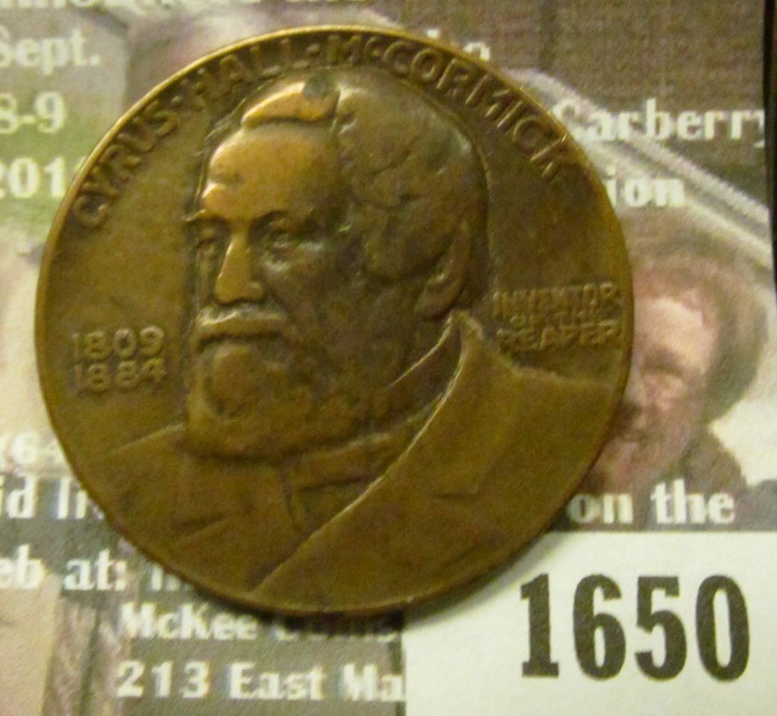 1650 _ 1831-1931 Cyrus McCormick Medal,Centennial of the Reaper.