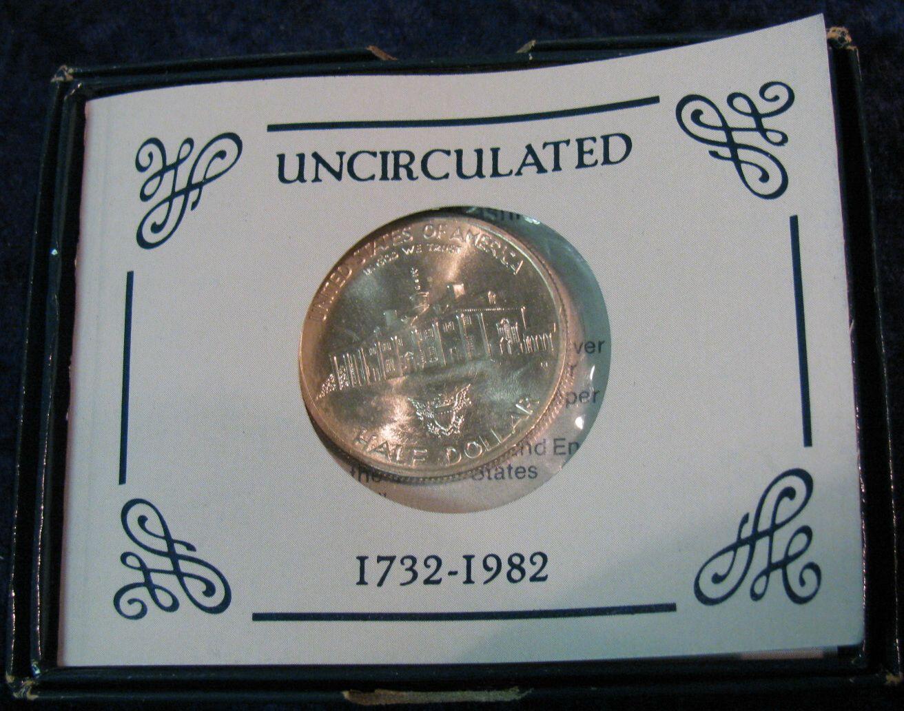 1651. 1982 D George Washington Silver Commemorative Half Dollar. BU. In original box.
