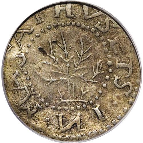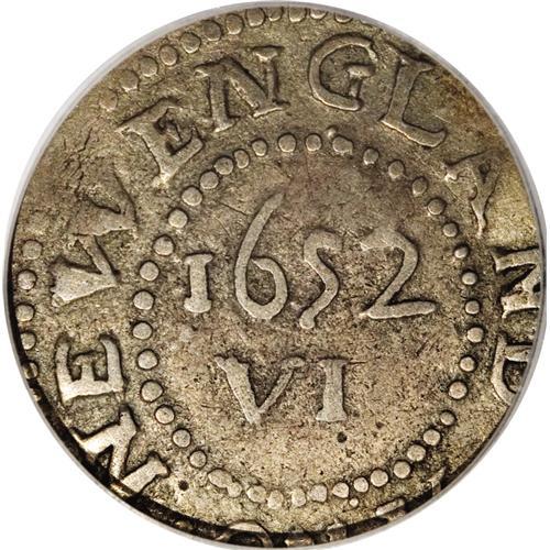 <B>1652 6PENCE Oak Tree Sixpence VF30 PCGS.</B></I> IN on obverse. Crosby 1b-D, Noe-22, R.5. The S at 3 o'clock is corrected, which distinguishes Noe-22 from its Noe-20 and Noe-21 predecessors. The tree is sharp, as are the date and denomination. Slightly wavy, as made from a rocker press. The reverse is misaligned toward 5 o'clock, with a portion of ANO of the flan, but the obverse is well centered with a few upper left letters close to the rim. The aqua, rose, and cream-gray surfaces are smooth except for two small marks on the extremities of the tree. Listed on page 37 of the 2007 <I>Guide Book.</B></I><BR><BR><b>Shipping:</b> Coins & Currency (<a target="_blank" href="http://www.heritageauctions.com/common/shipping.php">view shipping information</a>)