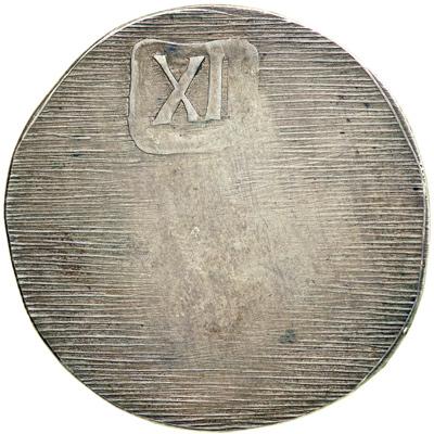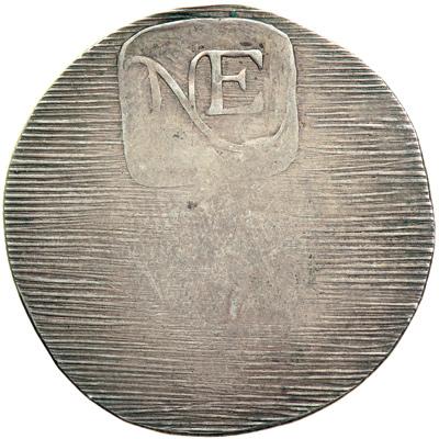 (1652) New England Shilling Wyatt Copy Kenney-1 in Silver. AU-50. A choice piece, essentially as struck by Thomas Wyatt of New York between 1840 and 1856. Just a hint of rub on the highpoints and no defects whatsoever. Struck in medal turn, head to head. A credible imitation of the Noe-1 original. Weight 100.4 grains.