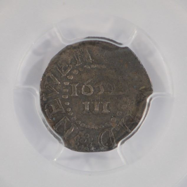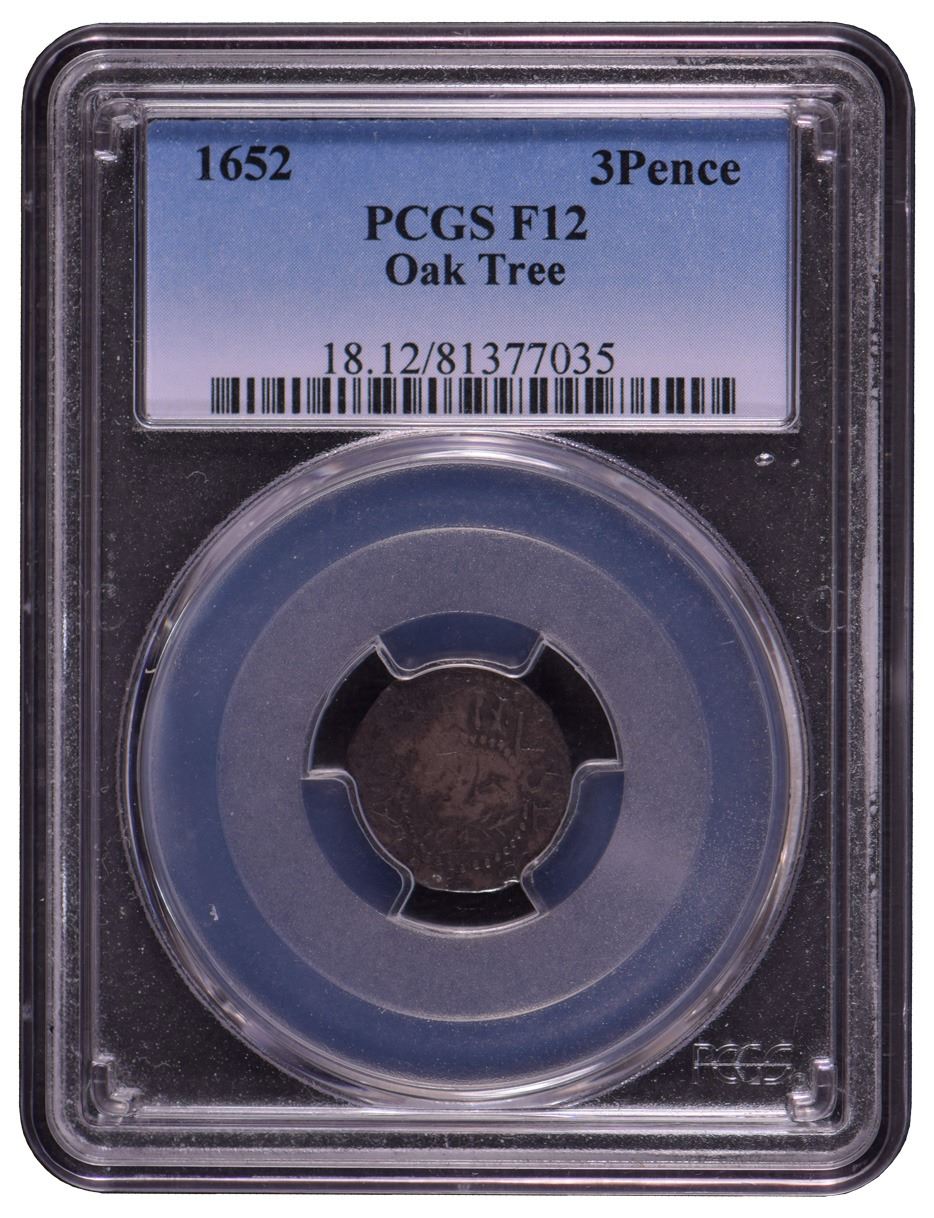 One 1652 Oak Tree 3 Pence Coin PCGS F12.