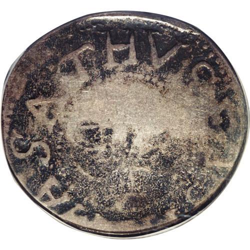 <B>1652<img border='0' src='http://www.heritagecoins.com/images/star.gif' width=10 height=10>HILNG> Oak Tree Shilling--Damaged--NCS. Fine Details.</B></I> Noe-5, Crosby 2-D, R.2. 67.6 grains. This wavy example features a bold reverse, while the top half of the oak tree is worn smooth. Most of the obverse legends are clear. The obverse die is moderately misaligned toward 6 o'clock, as often seen for Noe-5, and a mint-made clip at 12 o'clock affects the tops of a few reverse letters. Listed on page 37 of the 2006 <I>Guide Book.</B></I>