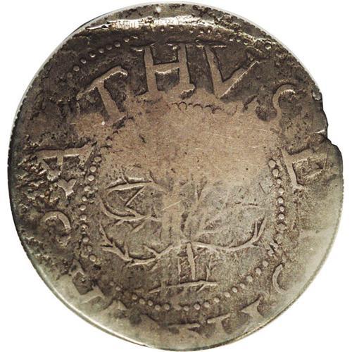 <B>1652<img border='0' src='http://www.heritagecoins.com/images/star.gif' width=10 height=10>HILNG> Oak Tree Shilling VF25 PCGS.</B></I> Noe-5, Crosby 2-D, R.2. A lightly buckled piece with a mint-made edge flaw at 2 o'clock and minor roughness on the obverse near 9 o'clock. The date and denomination have the sharpness of a higher grade. Wear is concentrated on the upper half of the tree and across portions of the borders. The obverse is misaligned toward 6 o'clock, as usual for Noe-5, while the reverse is well centered. Listed on page 37 of the 2006 <I>Guide Book.</B></I><BR><I>From The Steve Glenn Collection, Part Two.</B></I>