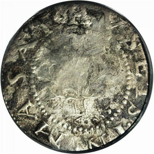 <B>1652<img border='0' src='http://www.heritagecoins.com/images/star.gif' width=10 height=10>HILNG> Oak Tree Shilling VG10 PCGS.</B></I> Noe-8, Crosby 5-A, High R.6. 67.4 grains. The wide O in DOM identifies this rare Noe variety. The tree branches also differ from the similar (and substantially less rare) Noe-9. This slightly wavy example is sharper than the VG10 grade implies, since all legends are clear, and the trees branches have surprising definition. The surfaces are somewhat rough, as expected for the grade, and the color varies from ivory to dark gray with occasional gold tints. Listed on page 37 of the 2006 <I>Guide Book.</B></I>