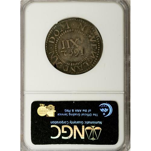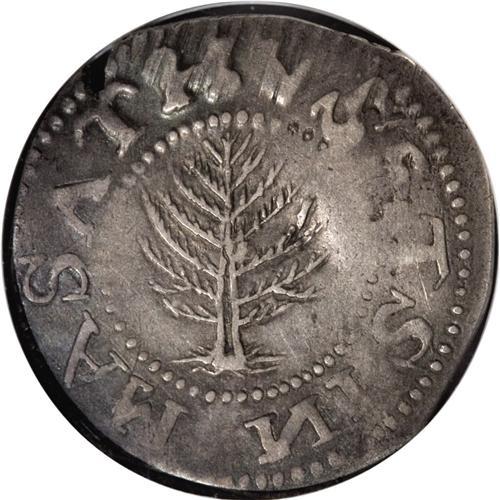 1652 SHILNG Pine Tree Shilling, Large Planchet AU50 NG