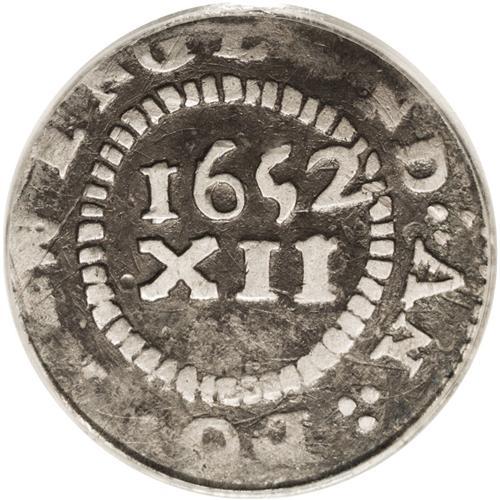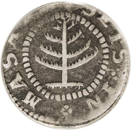 <B>1652 SHILNG Pine Tree Shilling, Small Planchet VF20 PCGS.</B></I> Noe-30, Crosby 13-S, R.3. 66.7 grains. Dark gray fields contrast with lighter cream-gray legends and devices. A few degrees off center toward 12 o'clock, but the central designs are bold, as are many of the peripheral letters. The fields are faintly granular, and exhibit numerous wispy abrasions. Listed on page 37 of the 2007 <I>Guide Book.</B></I><BR><I>From The Jones Beach Collection.</B></I><BR><BR><b>Shipping:</b> Coin/Currency (<a target="_blank" href="http://www.heritageauctions.com/common/shipping.php">view shipping information</a>)