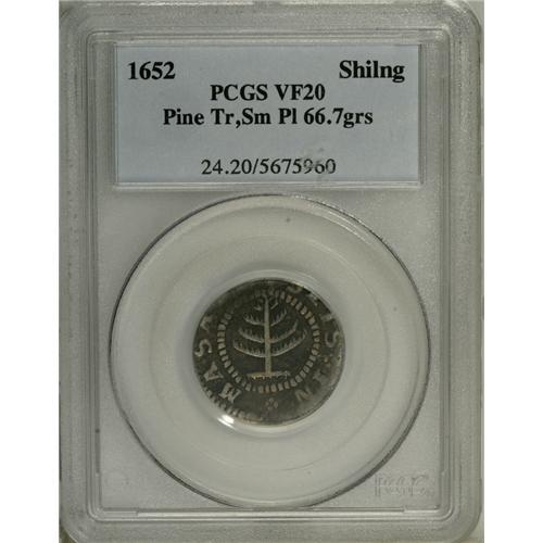 1652 SHILNG Pine Tree Shilling, Small Planchet VF20 PC