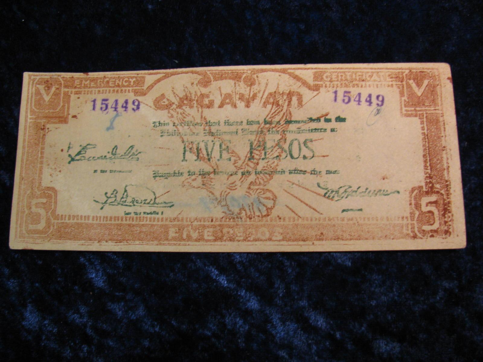 1653. WWII Cagayan Philippines, 5-Peso. Guerrilla Currency.