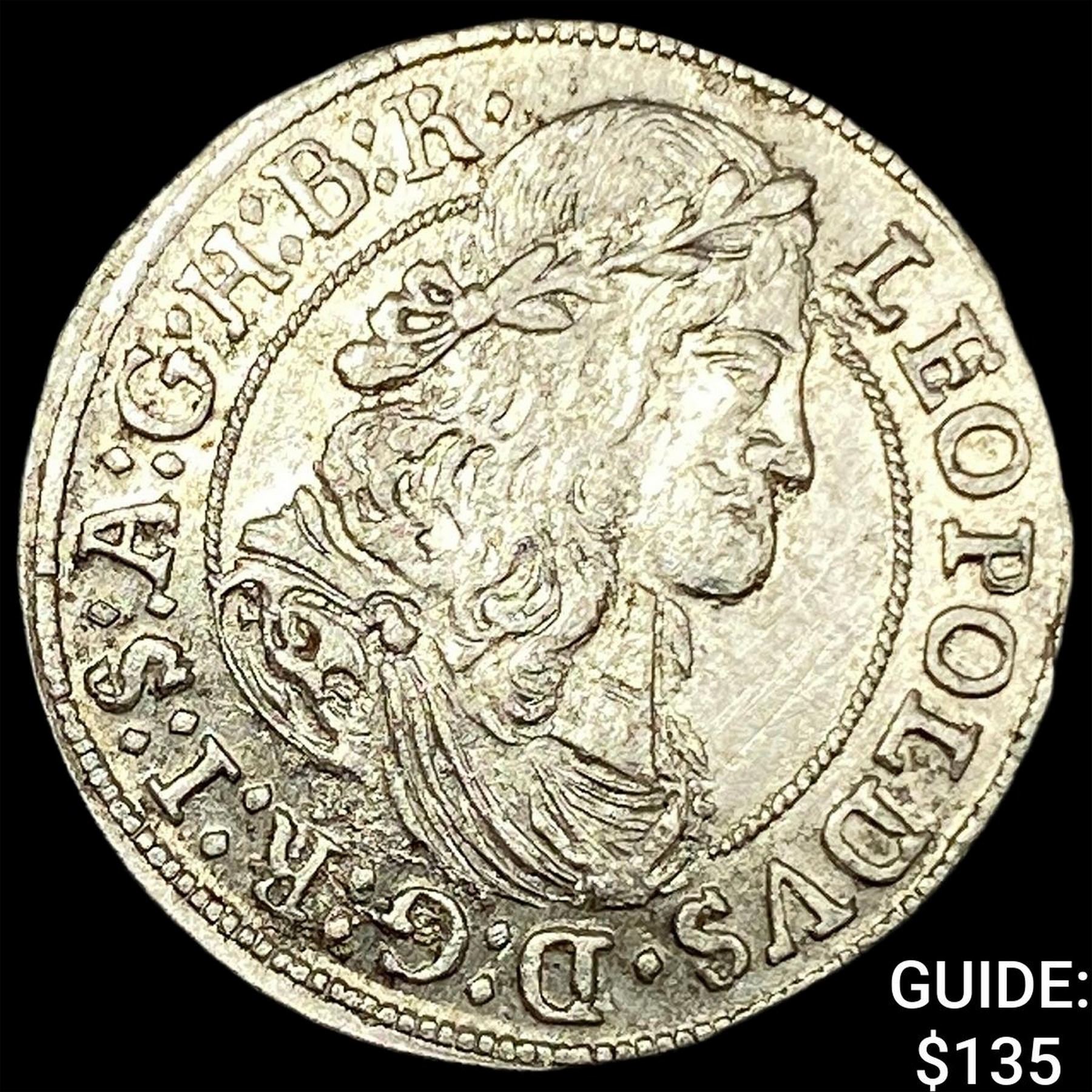 1655-1705 Hungary Leopold Silver 3 Kreuzer CLOSELY UNCIRCULATED