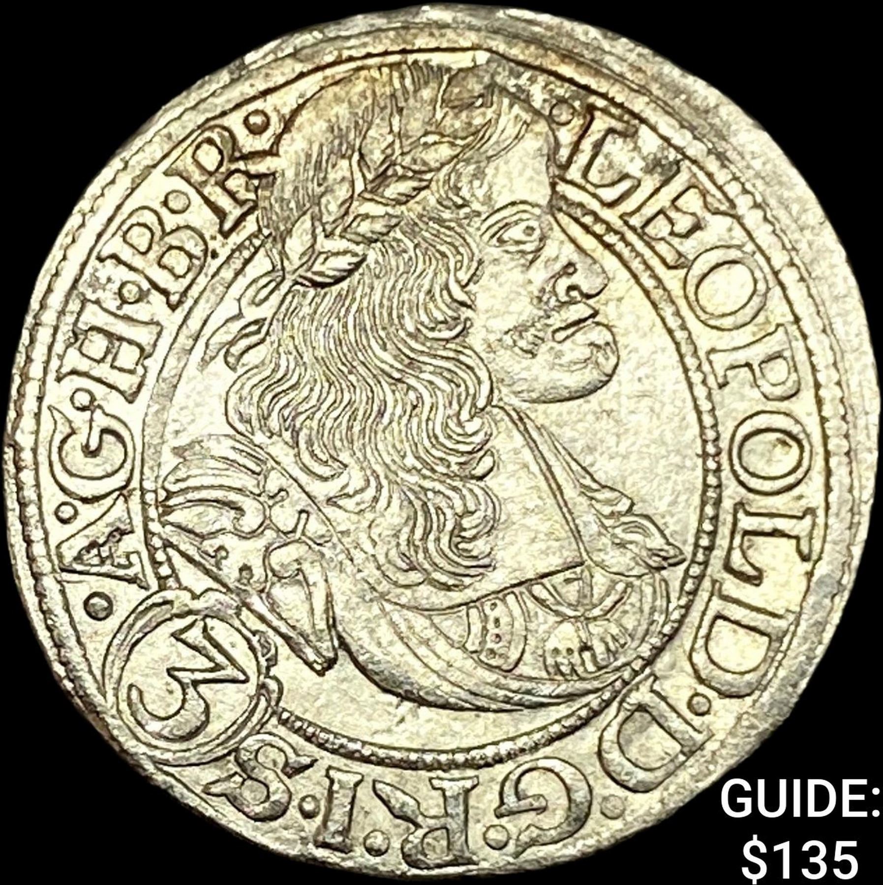 1655-1705 Hungary Leopold Silver 3 Kreuzer CLOSELY UNCIRCULATED