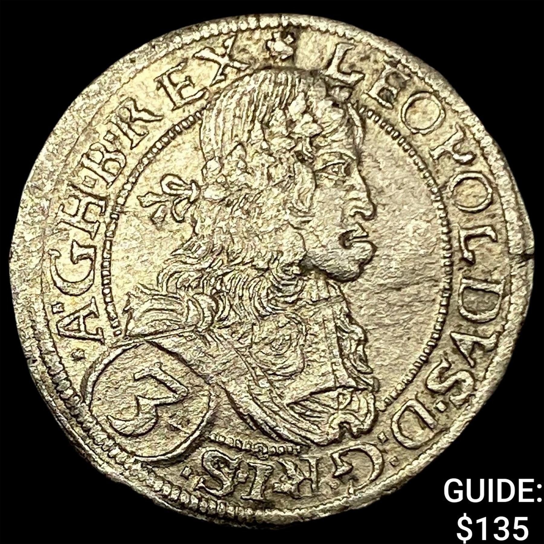 1655-1705 Hungary Leopold Silver 3 Kreuzer CLOSELY UNCIRCULATED