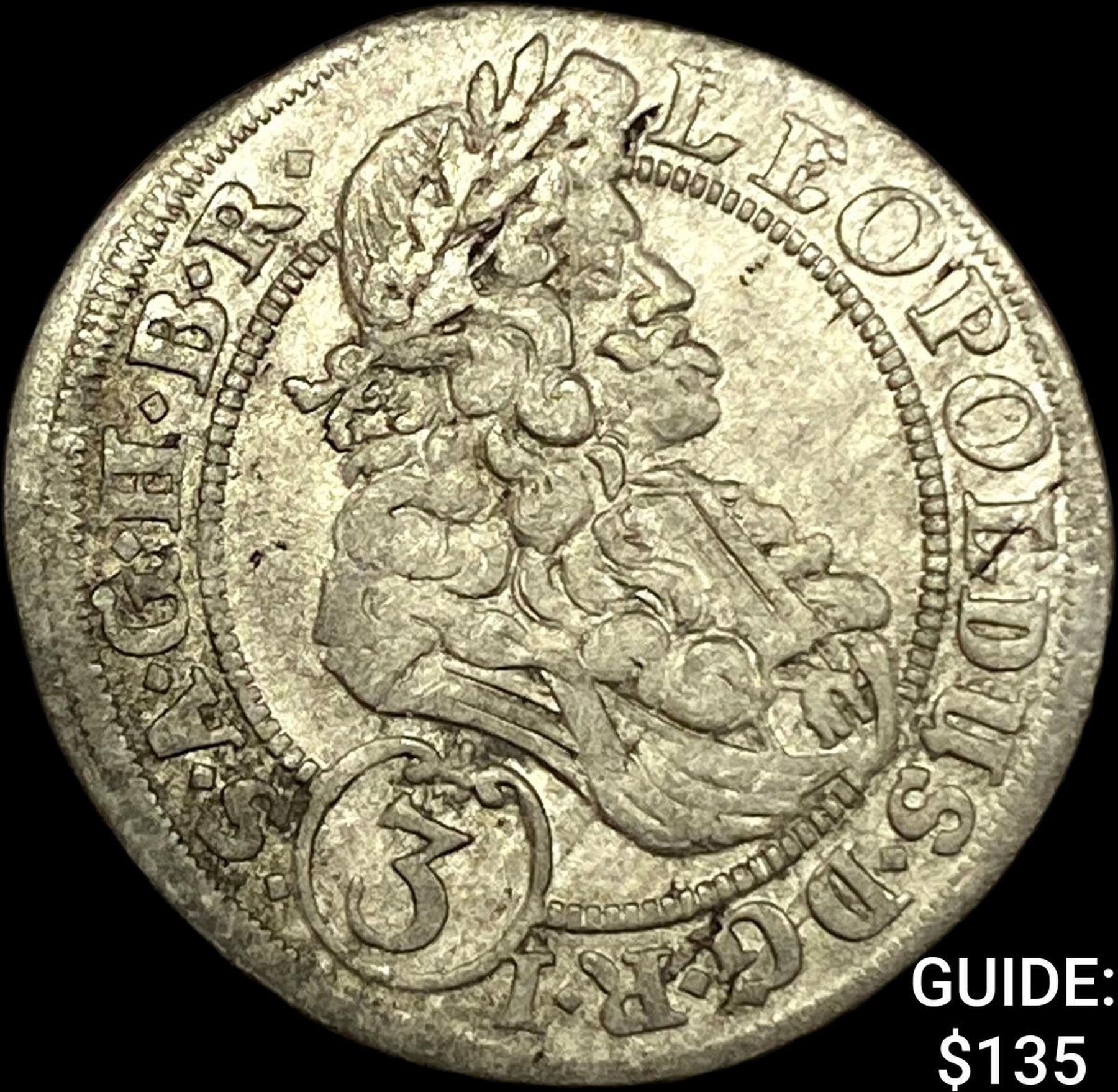 1655-1705 Hungary Leopold Silver 3 Kreuzer CLOSELY UNCIRCULATED