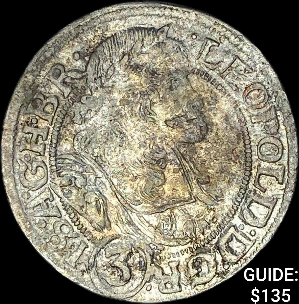 1655-1705 Hungary Silver 3 Kreuzer CLOSELY UNCIRCULATED