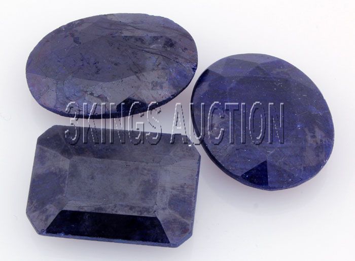 166.22ctw SapphireMixShape&SizesLooseGemstone lotof3 **|**|** 3 pcs Mix Sizes 28-30x19-23x7-8mm Natural Blue Sapphire Gemstone Oval and Emerald Shape ; MSRP: $600