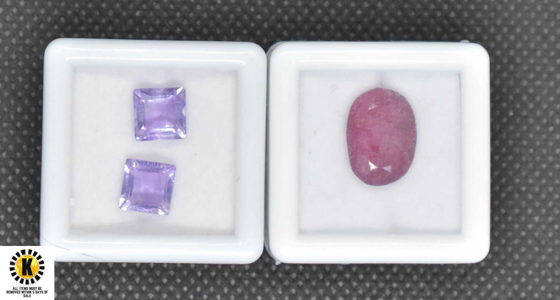 UNTREATED AMETHYST 7 X7 MM /COLOUR ENHANCE RUBY 9.6 X 13.3MM