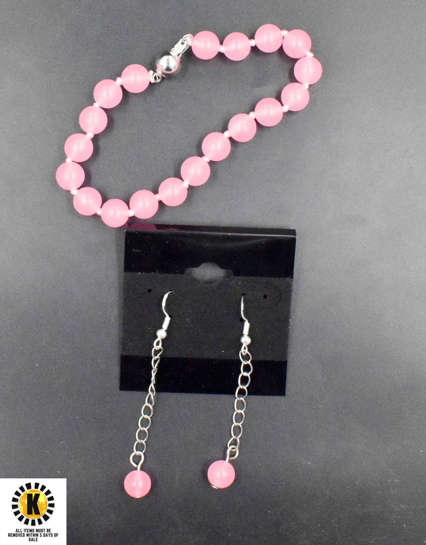 #166-NATURAL PINK JADE EARRINGS, BRACELET
