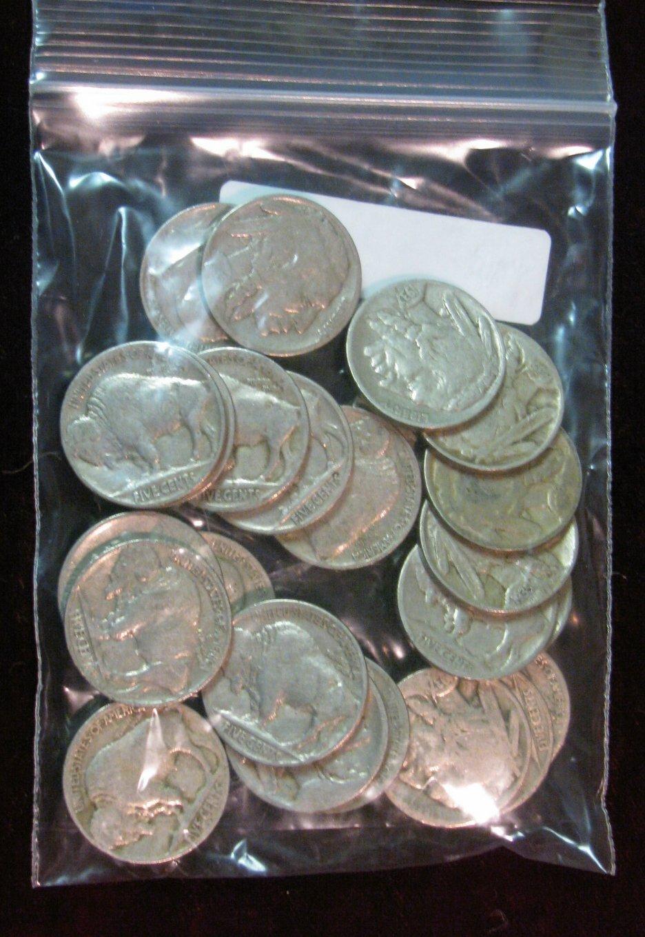 166. Roll of (25) Mixed Date Buffalo Nickels. Average circulated.