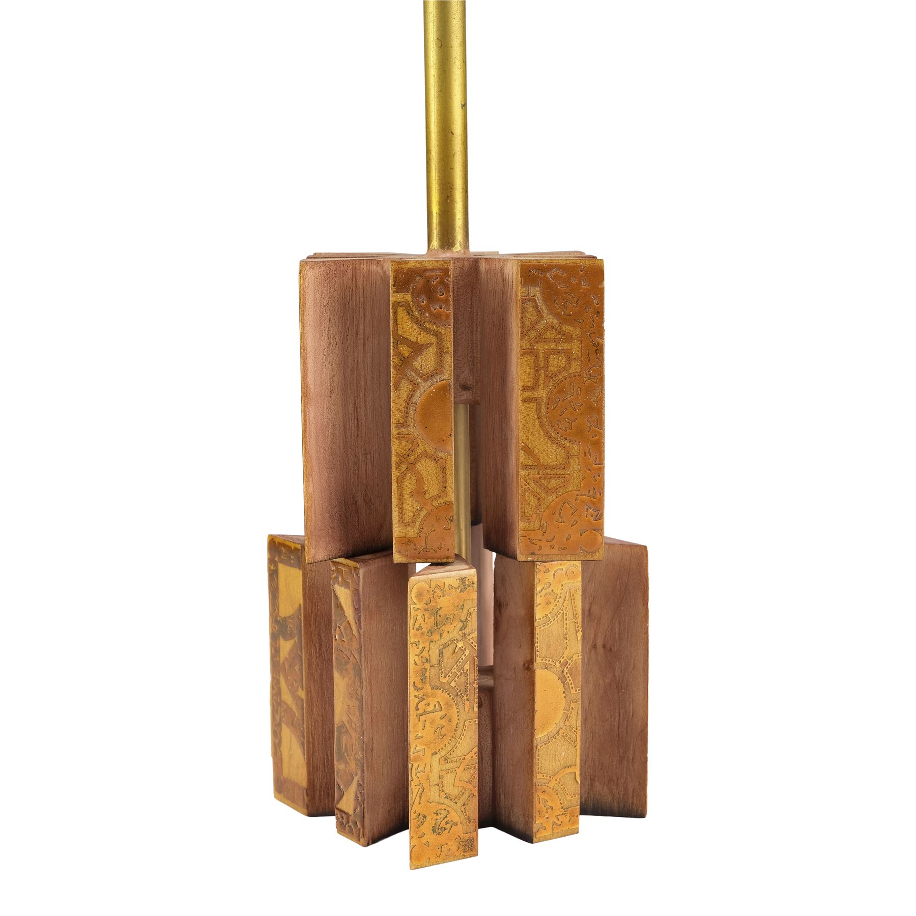 This practical special effects puzzle box is made of wood with copper-etched panels, which is unique to Hellraiser: Judgment. The top of the box is finished in black and a clear varnish is applied to all sides. It features a handle with a sliding toggle that allows the box to be maneuvered as it's been activated. This lot exhibits a buildup of grime and mild discoloration on the wood and shaft. Dimensions: 17.5" x 3" x 3" (44.5 cm x 7.75 cm x 7.75 cm)
