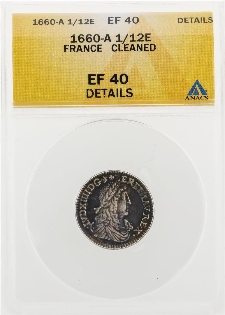 One 1660-A 1/12 Ecu France Cleaned Coin ANACS EF40 Details. ANACS Certified.