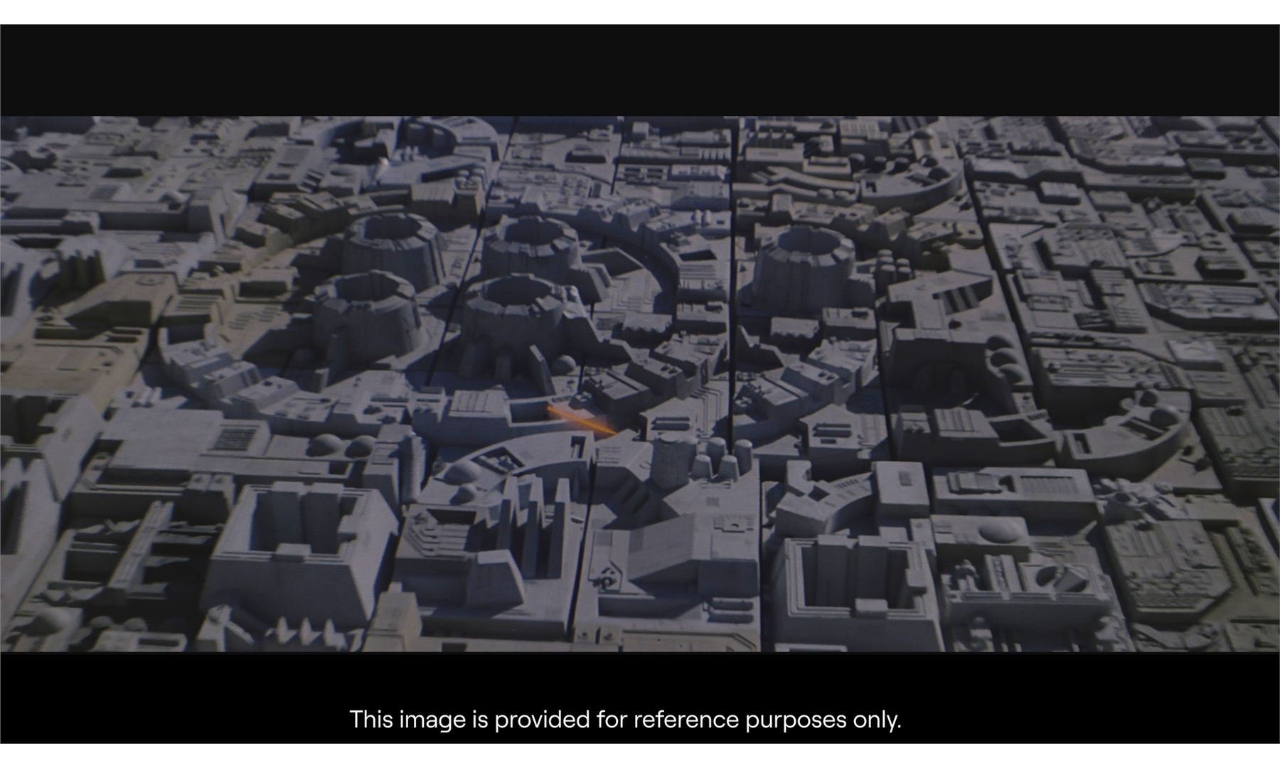 STAR WARS: A NEW HOPE (1977) - 2" x 1" Death Star Panel Piece - A Death Star model panel piece from George Lucas' Star Wars: A New Hope. This piece was created as part of the miniature set of the massive Death Star. Components such as this were made in several different patterns, cast in bulk, then hand-painted and assembled to create the overall surface of the deadly vessel.