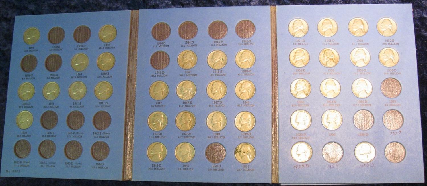 1663. 1938-58 Partial Set of Jefferson Nickels in a Whitman folder. (38 pcs.)