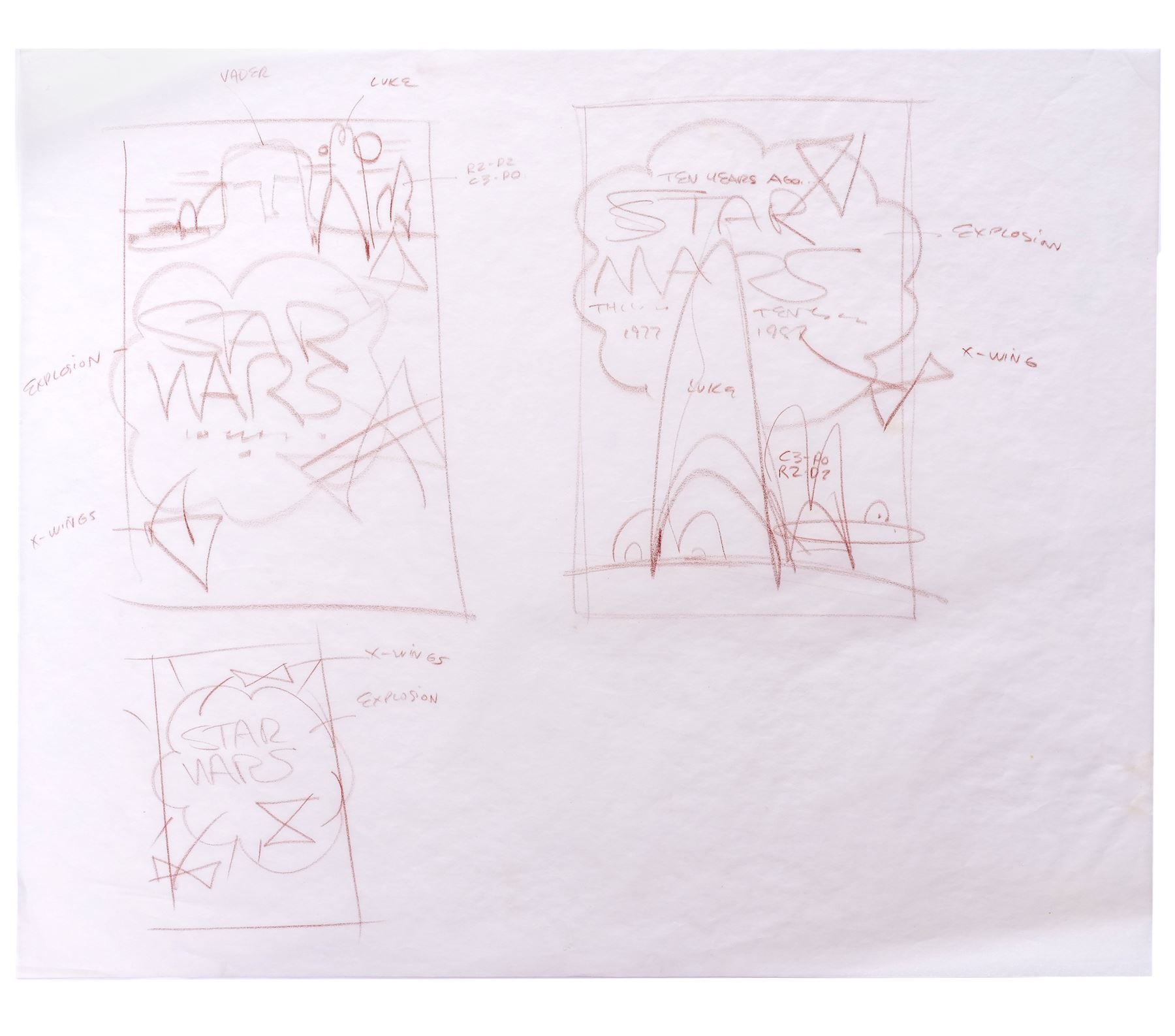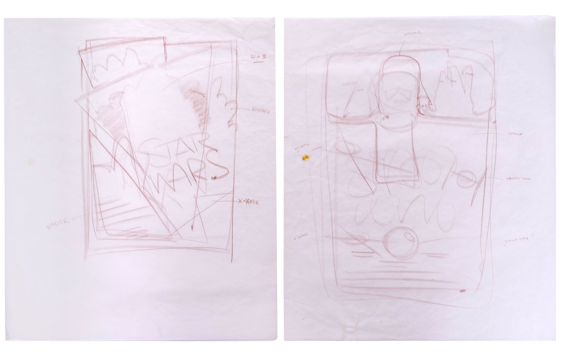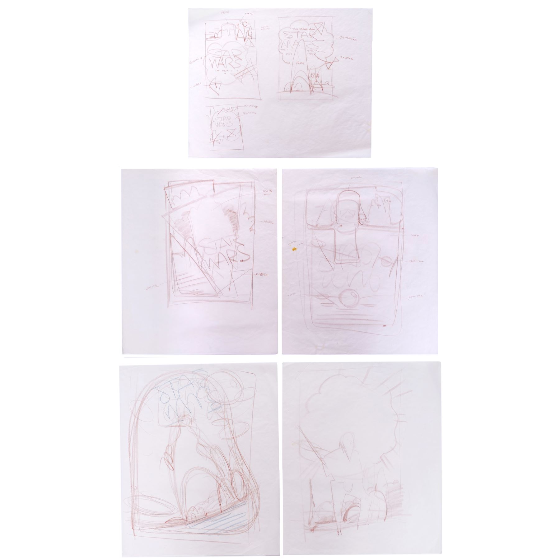 STAR WARS: A NEW HOPE (1977) - William Plumb Collection: Collection of Hand-Drawn Drew Struzan 10th Anniversary Preliminary Sketches - Hand-drawn Drew Struzan 10th anniversary preliminary sketches from George Lucas' Star Wars: A New Hope. Struzan created these sketches for movie posters in celebration of the film's 10th anniversary.