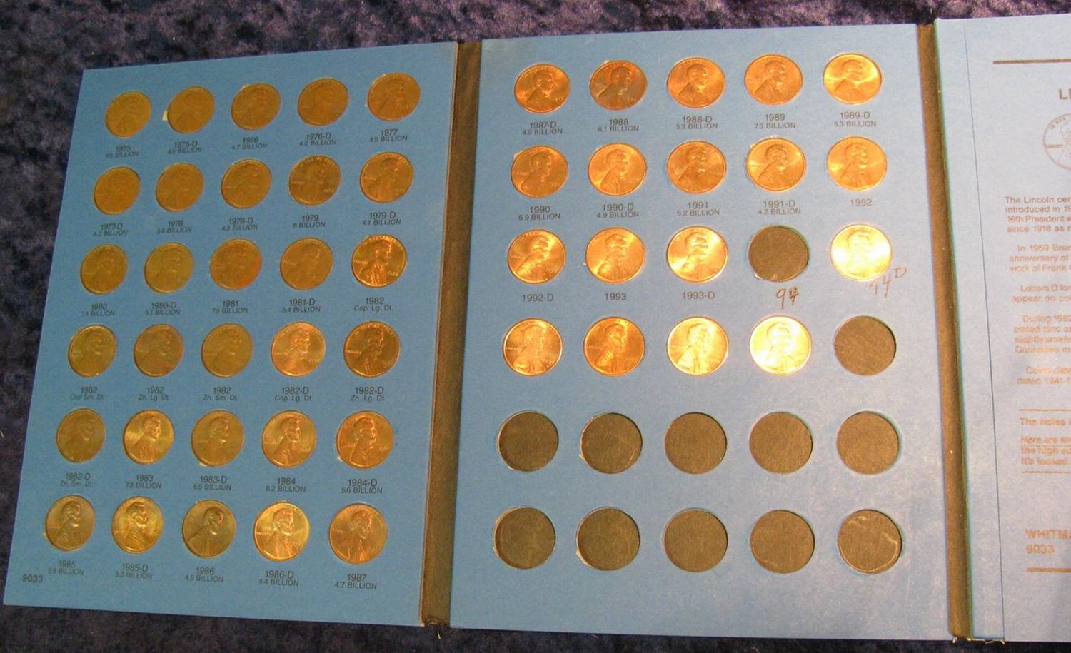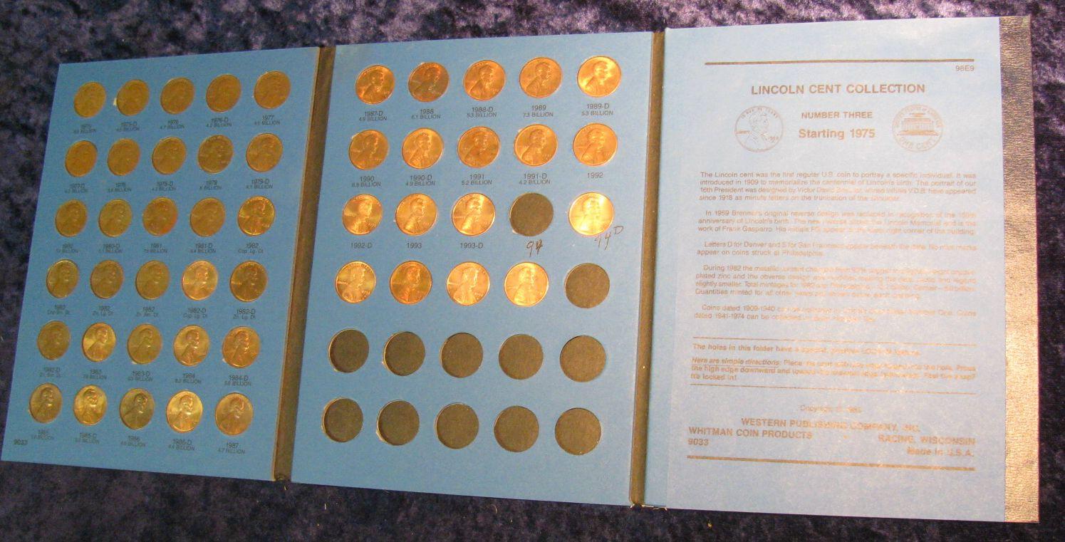 1665. 1975-94 Set of Lincoln Cents in a Whitman folder. (48 pcs.).