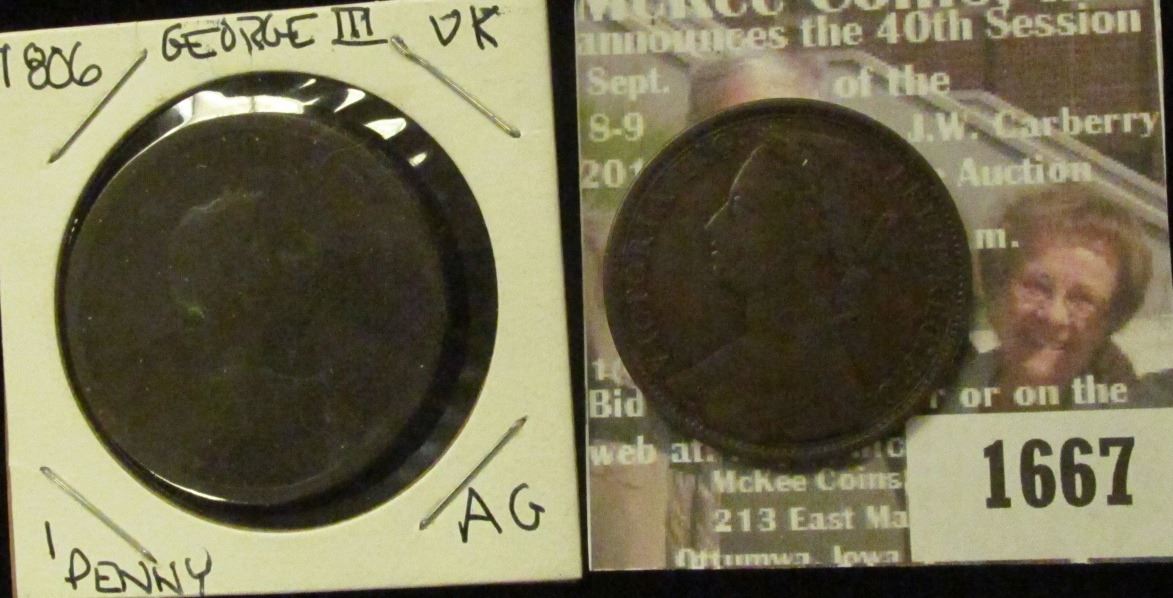 1667 _ 1806, 1877 Great Gritain Pennies.