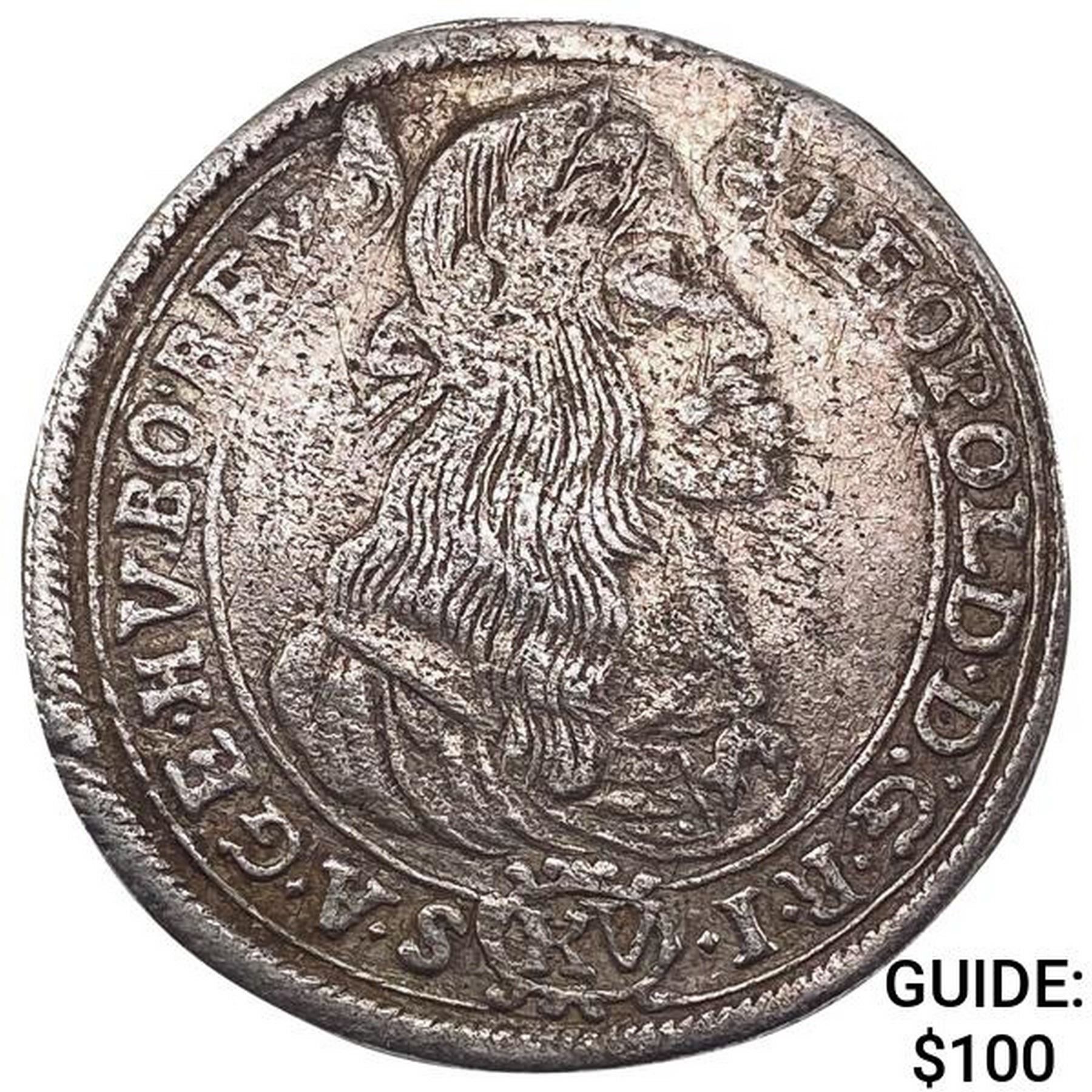 1667 Hungary Silver 15 Kreuzer NEARLY UNCIRCULATED