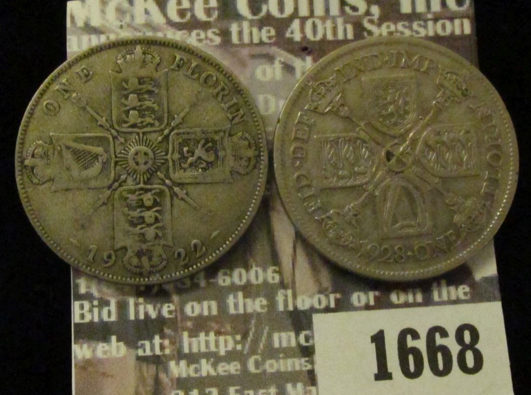 1668 _ 1922, 1928 Great Britain Silver Florines.