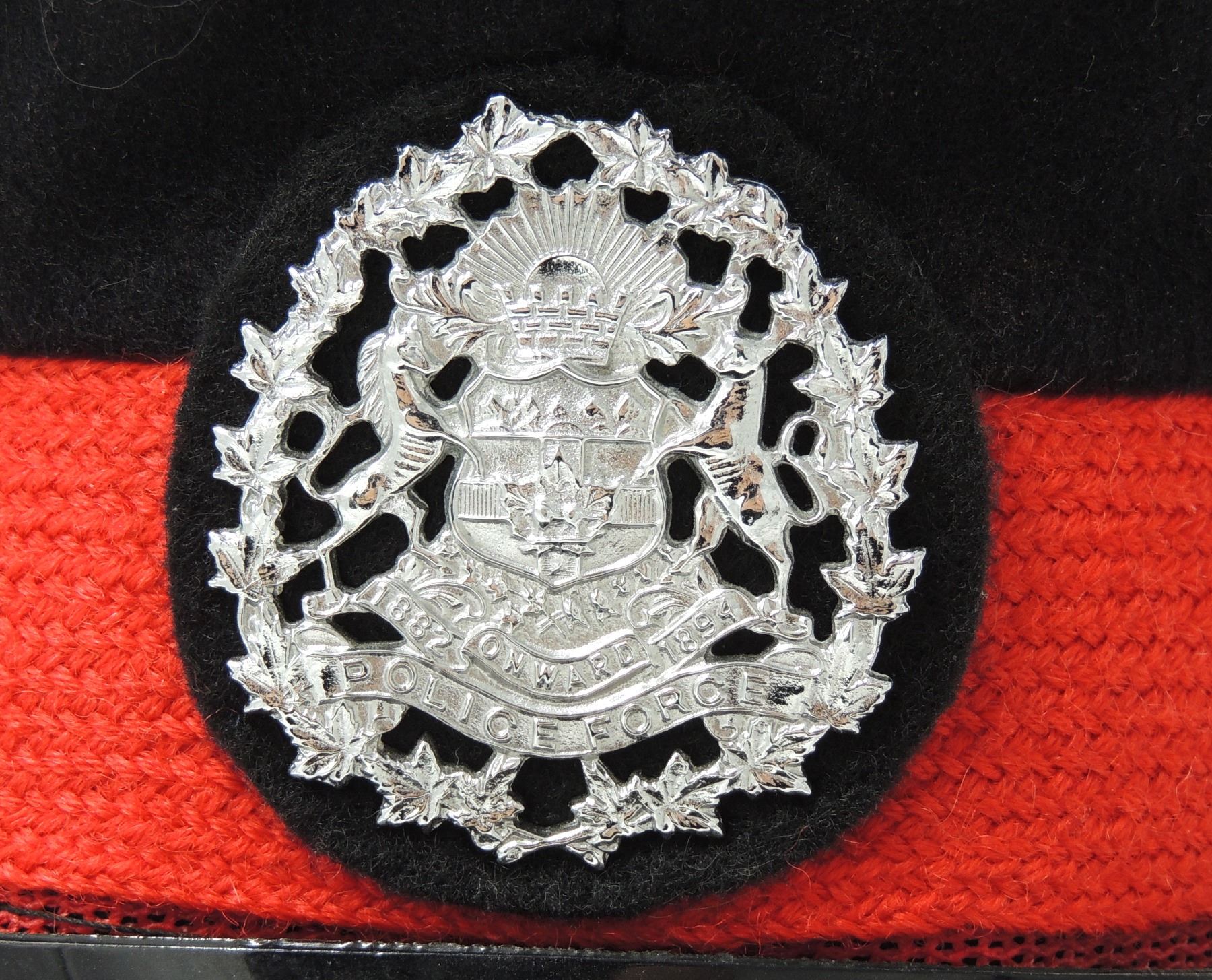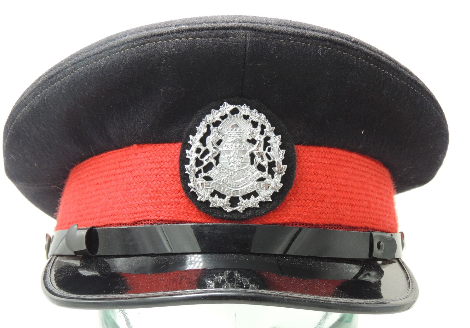 SERVICE VISOR WITH CAP BADGE CANADA CANADIAN LAW ENFORCEMENT CALGARY ALBERTA STOKES DON MILLS ONTARIO MADE