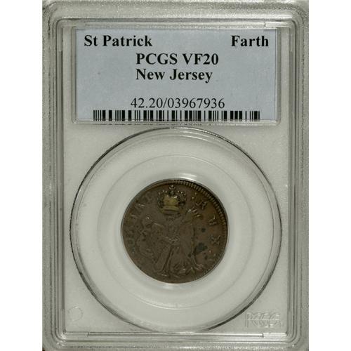 <B>(1670-75) FARTH St. Patrick Farthing VF20 PCGS.</B></I> Breen-208, nothing below king. This light brown piece is well centered and has clear legends and types. Lightly pitted, and a gray depression is present behind the king. Faint marks are noted near the crown. The popularity of St. Patrick farthings have increased considerably over the past decade. Listed on page 39 of the 2007 <I>Guide Book.</B></I><BR><BR><b>Shipping:</b> Coins & Currency (<a target="_blank" href="http://www.heritageauctions.com/common/shipping.php">view shipping information</a>)