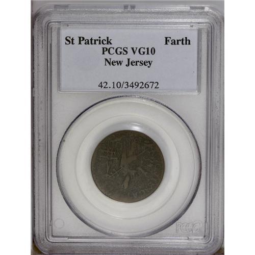 <B>(1670-75)<FARTH> St. Patrick Farthing VG10 PCGS.</B></I> Breen-211. The harp strings and the church are clear despite 50 points of wear. This moderately granular medium brown example has discernible legends aside from PLEBS. Listed on page 39 of the 2006 <I>Guide Book.</B></I> <BR><BR><B>Important notice:</B> Heritage usually auctions material at the rate of 200-250 lots per hour. On some occasions eBay Live bid software or the Internet may not be able to keep up with the pace of the auction. We recommend placing a realistic absentee bid now as insurance to avoid disappointment. Occasionally the auctioneer may eliminate or reject an eBay Live bid, and the auctioneer may also reopen a lot after the close of the eBay live bidding (usually because we missed an audience bid), and may reject your bid even if it shows you as the winning bidder. By bidding via eBay Live, you agree that Heritage may award the lot to another bidder at its sole discretion under the circumstances described above or any other reasonable circumstances. Since eBay bids are not shown to us until we open the lot on the floor, we treat those bids just like floor bids. In most cases the floor responds before the eBay bid is presented to us, due to Internet lag time, so for consistency we have made it a policy that floor bids are always considered first over tie eBay live bids. Also please note that all Heritage lots purchased through eBay Live carry a 20% Buyer's Premium. Please make sure you read the Terms and Conditions before you bid. This lot is being auctioned in conjunction with a live floor auction by Heritage Galleries & Auctioneers. All final auction and invoice information will be supplied by Heritage Galleries & Auctioneers, and all other information should be considered preliminary. Lot:8 <BR><BR><B>Winning Notification and Billing:</B> After the FINAL session in this auction is complete, Heritage will send e-mail and snail mail invoices. This process normally takes several days. All final auction and invoice information will be supplied by Heritage Galleries & Auctioneers, and all other information should be considered preliminary. <BR><BR>This auction will be conducted on a live auction floor and over the Internet through eBay Live. If you choose to place an absentee bid, please take a moment to <font color='#0000ff'><u><a href='http://pages.ebay.com/liveauctions/help/before/laabsentee.html'>learn how eBay Live absentee bidding works</a></u></font><font color='#000000'>