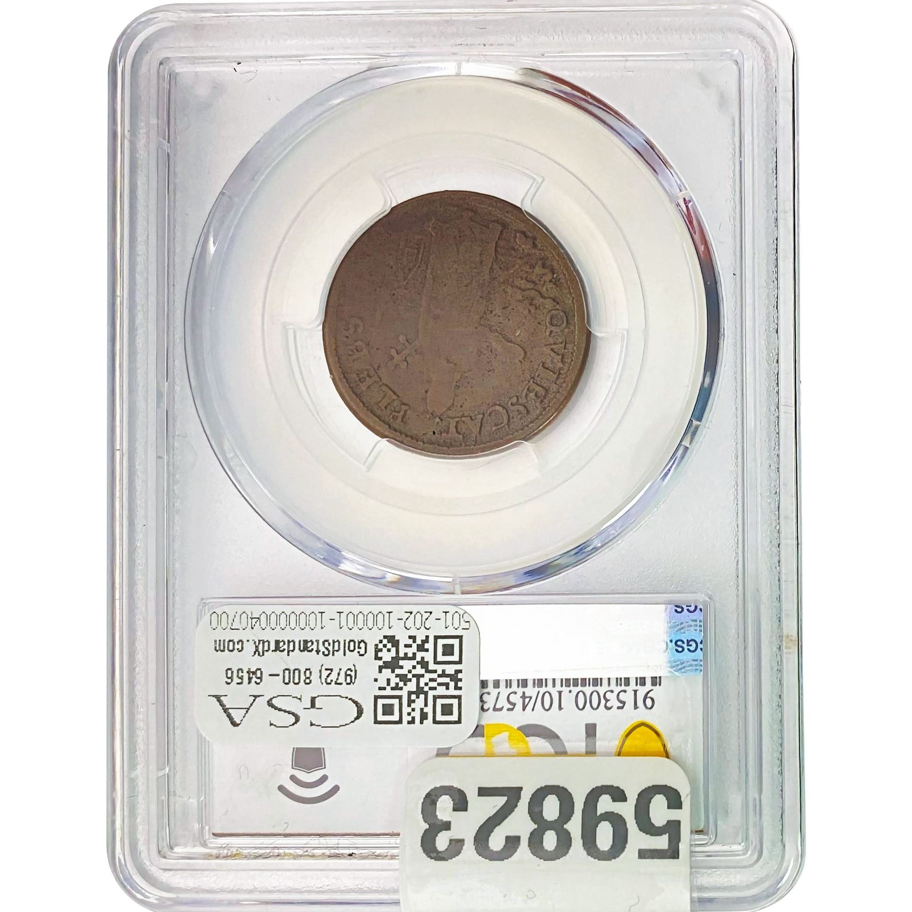 e. Coins sold referencing a third-party grading service are sold “AS IS” without any express or implied warranty, except for a guarantee by GSA that they are genuine. Removal or alteration of the holder, voids all of Bidder’s claims concerning that Product. Certain warranties may be available from the grading services and Bidders are referred to them for further details: Numismatic Guaranty Corporation (NGC), PO Box 4776, Sarasota, FL 34230, www.ngccoin.com/services/writtenguarantee.asp; Professional Coin Grading Services (PCGS), PO Box 9458, Newport Beach, CA 92658, www.pcgs.com/guarantee.html; ANACS, 6555 S. Kenton St., Ste. 303, Englewood, CO 80111; and Independent Coin Grading Co. (ICG), 7901 East Bellview, Ave., Suite 50, Englewood, CO 80111.
