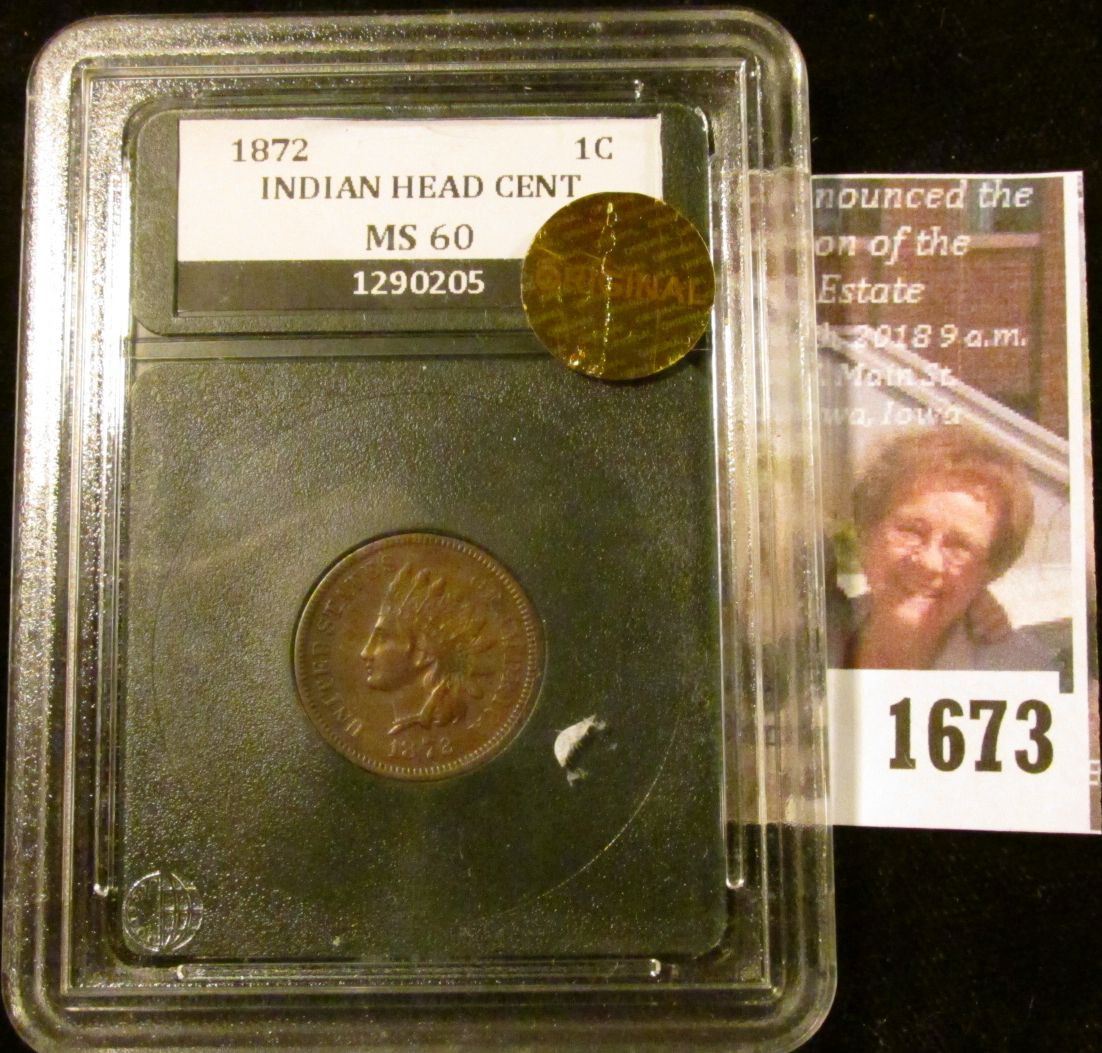 High Grade 1872 Indian Head Penny. The Coin Has Full Liberty, Feathers Visible, Full Rims With Cartwheels, and Diamonds Present
