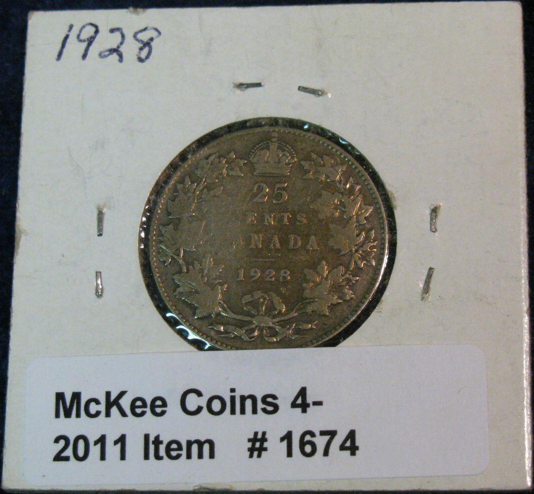 1674. 1928 Canada Silver Quarter. G+.